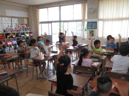「長さ」の学習です。昨日の校内研修会で公開した授業と同じところなので、意見のさ出されたところを改善して授業が行われました。教師にとっても、日々勉強です。