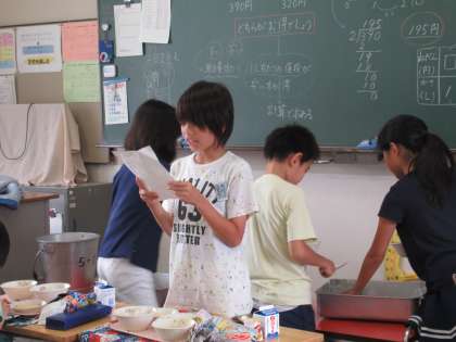 これも食への関心を高めるための食育の一環で、毎日、栄養教諭が作成しています。