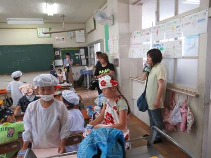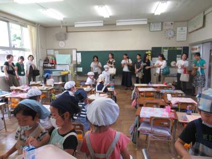 今日は、1年生の保護者の方々を対象とした「給食参観・給食試食会」が開かれました。30人余りの方が参加してくださいました。