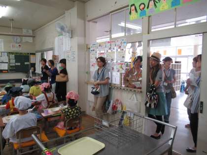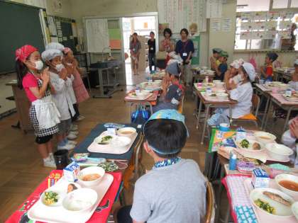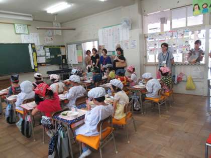 今日は、1年生の保護者の方々を対象とした「給食参観・給食試食会」が開かれました。30人余りの方が参加してくださいました。