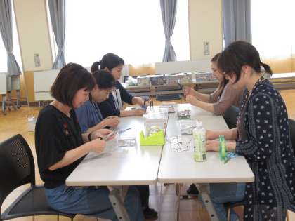 今日は、家庭教育学級として、ベルマークの集計が行われています。たくさんの保護者の方が、作業をしてくださっています。