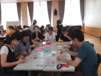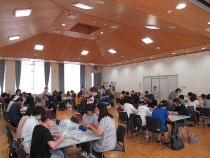 今日は、家庭教育学級として、ベルマークの集計が行われています。たくさんの保護者の方が、作業をしてくださっています。