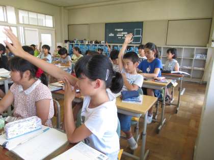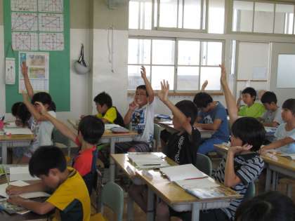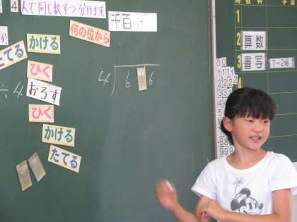 4年生の算数少人数学習の様子です。3学級が4クラスにわかれるため、発言の機会が増えたり、先生の支援が行き届きやすくなったりする学習形態です。