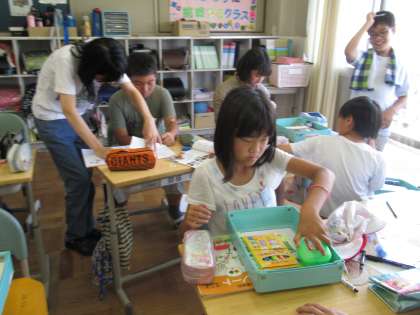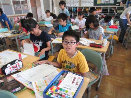 家庭生活について学んでいる5年生。今日は、暮らしやすくする工夫として、まず、道具箱の整理をしていました。