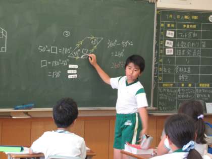 角の大きさを学習していました。今までに学習したことを活用して、新しい問題場面も解決していきます。
