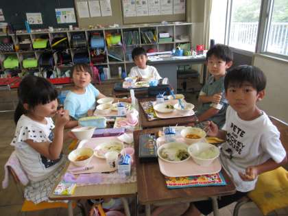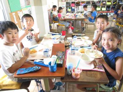 みんなで食べるとおいしいね。笑顔で食べていました。