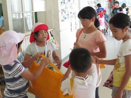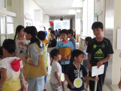 ロング昼休みを使って、なかよし(たてわり)班ごとに、約40分の遊びを楽しみました。今回は、6年生が計画を立てて進行しました。6年生は、1年生のお迎えもしてくれました。