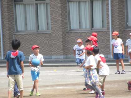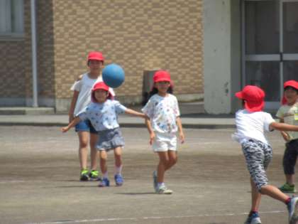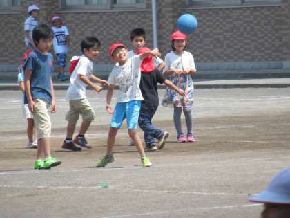 ロング昼休みを使って、なかよし(たてわり)班ごとに、約40分の遊びを楽しみました。今回は、6年生が計画を立てて進行しました。ドッジボールは、低学年でも危なくないように、利き手ではない方で投げています。