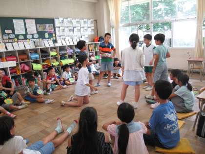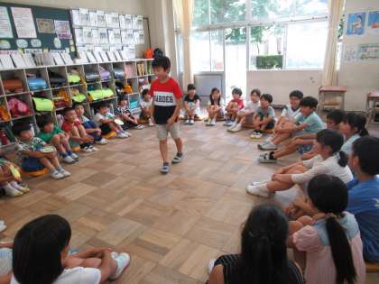 ロング昼休みを使って、なかよし(たてわり)班ごとに、約40分の遊びを楽しみました。今回は、6年生が計画を立てて進行しました。室内では、「震源地をさがせ」「爆弾ゲーム」などで楽しんでいました。