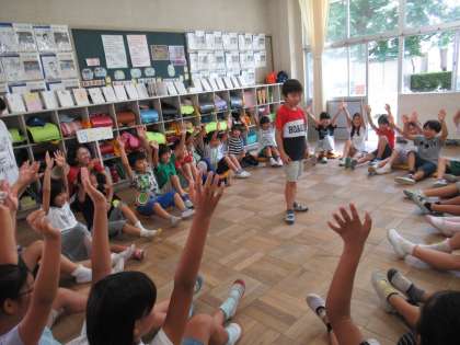 ロング昼休みを使って、なかよし(たてわり)班ごとに、約40分の遊びを楽しみました。今回は、6年生が計画を立てて進行しました。室内では、「震源地をさがせ」「爆弾ゲーム」などで楽しんでいました。