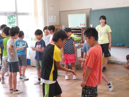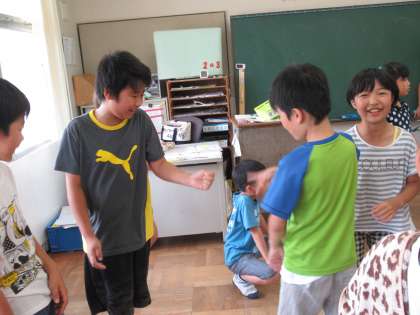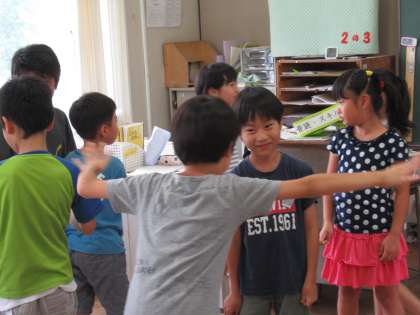 ロング昼休みを使って、なかよし(たてわり)班ごとに、約40分の遊びを楽しみました。今回は、6年生が計画を立てて進行しました。室内では、「ジャンケンピラミッド」「○×ゲーム」なども楽しんでいました。