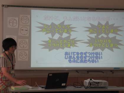 1年生が、身体測定と合わせて、アンガーマネジメントの指導を受けていました。不安や怒りやいらいらなど、マイナスの感情は誰にでもあるけれど、その感情とどう付き合うかが大事。大爆発を起こしたりいつまでも引きずったりしないよう、付き合いかたのこつを教えてもらいました。