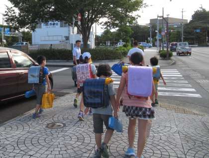 地域の方や保護者の方が、見守ってくださいます。今日も、事故なく安全に登校しました。