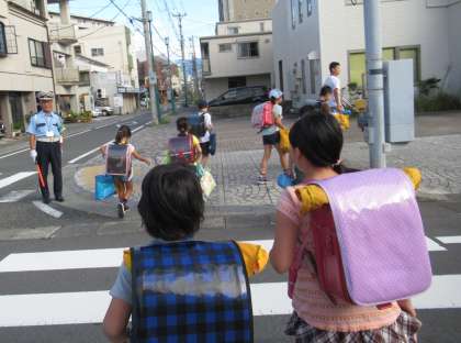地域の方や保護者の方が、見守ってくださいます。今日も、事故なく安全に登校しました。