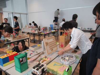明日・明後日の2日間、プラサ・ヴェルデにおいて、児童生徒研究作品展が開催されます。今日は、各校職員により、展示作業が行われました。