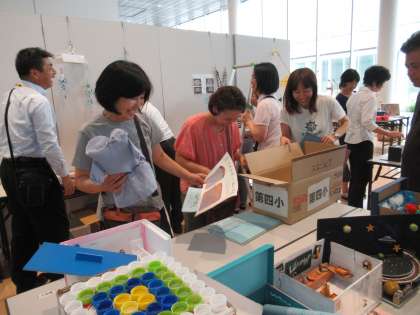 明日・明後日の2日間、プラサ・ヴェルデにおいて、児童生徒研究作品展が開催されます。今日は、各校職員により、展示作業が行われました。