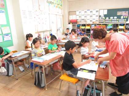 1年生は、たくさんの物を、10のかたまりを作って数える学習をしています。これが、数の構成の理解につながっていきます。