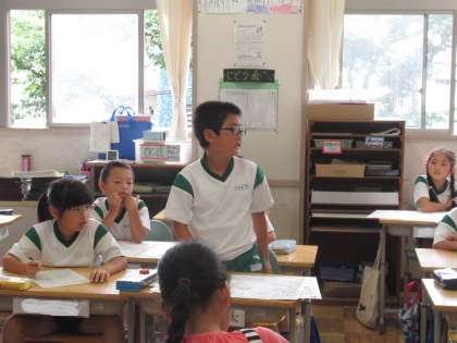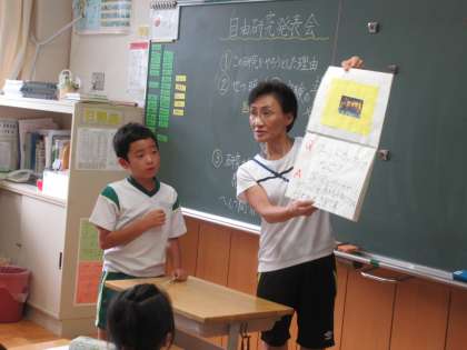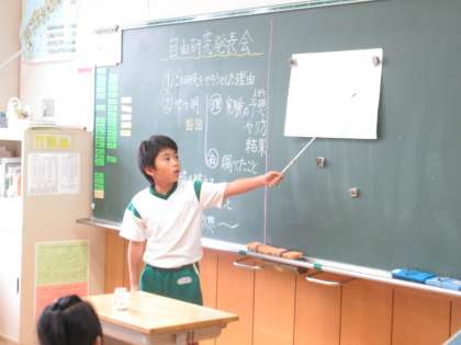 夏休みに取り組んだ研究や作品について、発表していました。説明の仕方がわかりやすくて、友だちにも上手に伝わっていました。