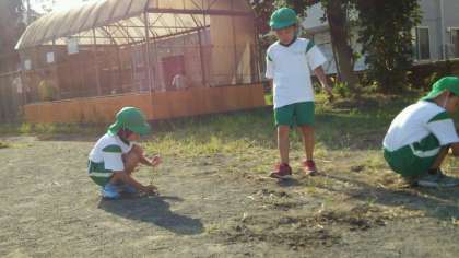 一年生が、自主的に草取りをしてくれていました。二年生は、野菜の水やりです。進んで働ける、すてきな子どもたちです。