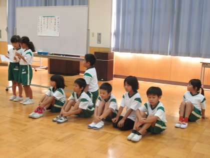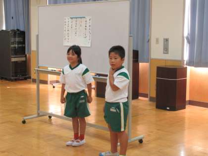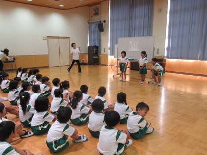 1年生は多目的ホールで、歌やゲームを楽しみました。1年生でも、こんなに上手に会を運営できるのだと、感心させられました。