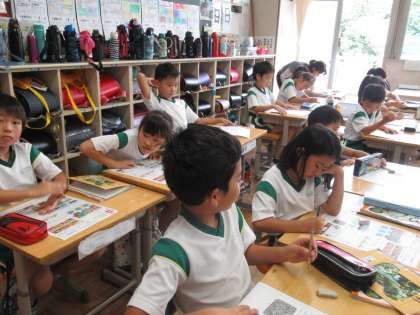 理科で、ホウセンカの学習をしていました。今年はうまく生育しなかったので、プリントで確認しながら、生長を様子を振り返っていました。