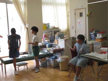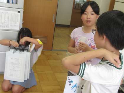 昼休みに、保健委員会の子どもたちが保健室に集まってきました。こうして、四小のみんなのために、自分の時間を使って働いてくれているのです。