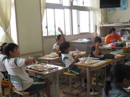 スープに入っていたシイタケ、少し苦みのあるこいわしのフライ、苦戦する子が多かったようです。