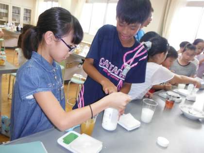 サイエンスクラブAです。クエン酸を使って、炭酸ジュースを作っていました。味は・・・?