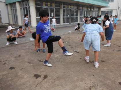 サイエンスクラブBです。今日は外で活動して今した。入浴剤を使っての実験「バブでぽん!」。いつふたが飛び出すかどきどきで何度もやっていました。
