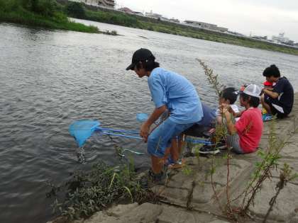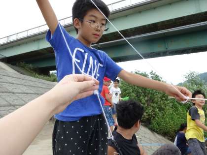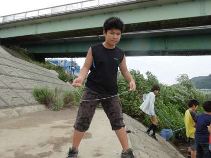 ネイチャークラブの活動です。今日は、狩野川の堤防につりに行きました。自作のつりざおを作ってきた子もいましたよ。