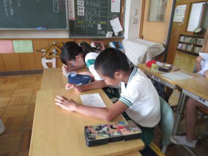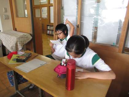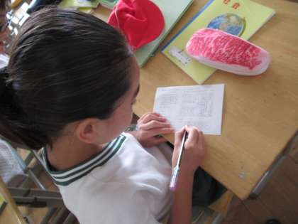教室に戻った子どもたちは、感情を表す言葉を見つけるパズルを解いていました。
