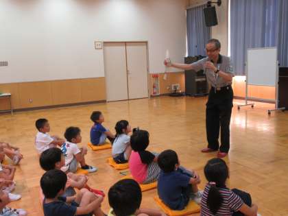 学校の警備でもお世話になっている警備会社から講師をお招きし、学年に応じた指導をしていただいています。