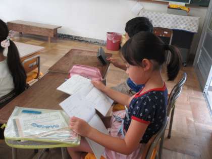 予定帳をしっかり書きます。書き終わったら、お隣さんと交換して、正しく書けたか、チェックしてもらいます。