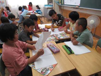 社会科では、四校区の学習をしています。今日は、どこでどんな買い物をしているか発表しあい、地域のお店について学びました。