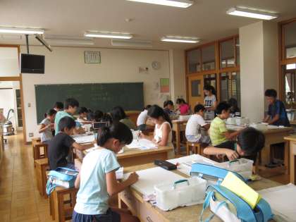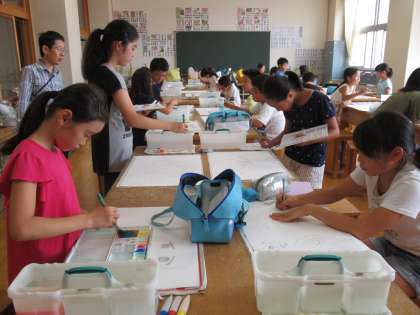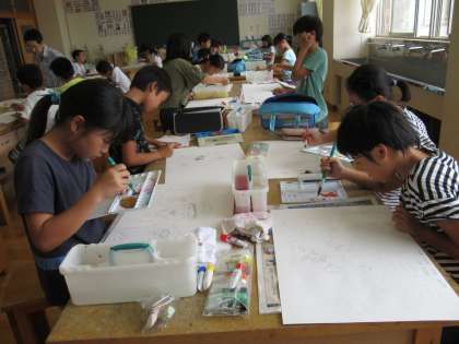 3原色のしばりの中で、自分で色を作って絵を描いていました。