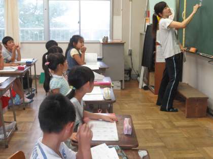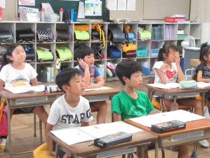 書写は、3年生の先生と学習します。いろいろな先生と学ぶことで、かかわりが広がります。