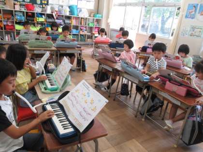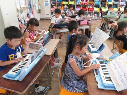 鍵盤ハーモニカの演奏です。みんなの音が、そろっていました。
