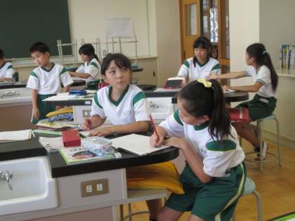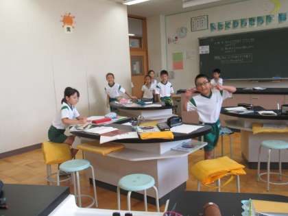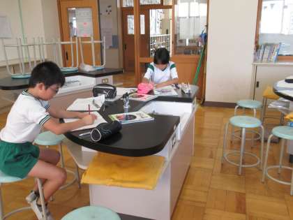 なんでこんなに子どもが少ないの? と思っていたら、月の観察で外に出ていた子どもたちが、ぽつりぽつりと戻ってきました。すぐに、記録を書きはじめる姿に、感心させられました。