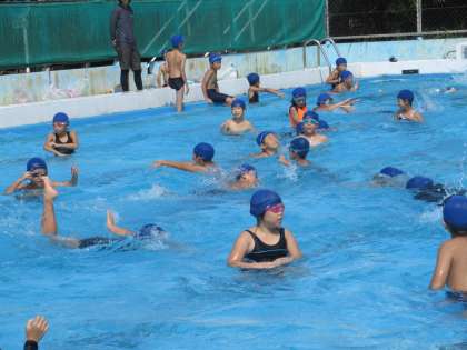 学年でプールに入っていました。そろそろ水泳シーズンも終わりです。どれだけ力が伸ばせたでしょうね。