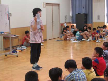 「楽」という字は「らく」と読むけれど、送り仮名をつけると「楽しい」になる。みんなで楽しい自然教室にするためには、楽をしていてはいけない。一人一人が、自分の行動に責任をもって、日頃の生活から気持ちを引き締めて自然教室に向かおう。先生のお話に、背筋を伸ばした5年生でした。