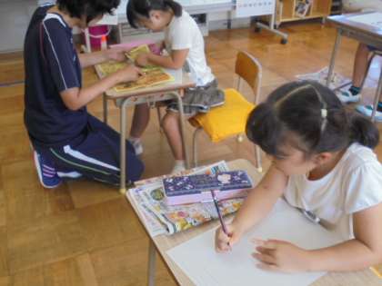 自分オリジナルのスーパーの広告をつくっています。何を売りにするのか楽しみです!