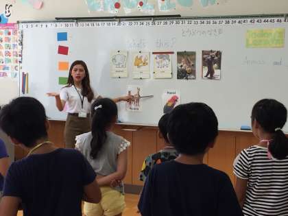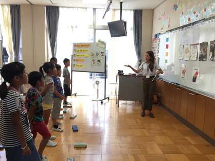 楽寿園探検で出会いそうな動物たちの名前を復唱しています。このあとには、動物の鳴き声クイズもありました。実際に動物たちと会うのが楽しみになってきましたね。