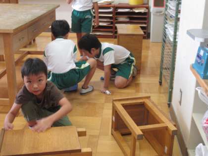 木工なので、木くずがたくさん出ます。みんなで協力して、丁寧に後片付けをしました。