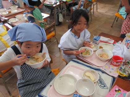 ご飯は「ジャンバラヤ」。スパイシーなピラフで、子どもたちは、もりもり食べていました。