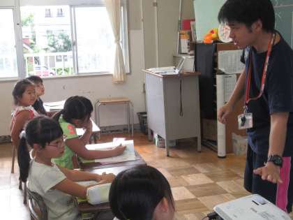「かたち」の学習をしています。先生が映像を見せてくれるので、興味津々です。