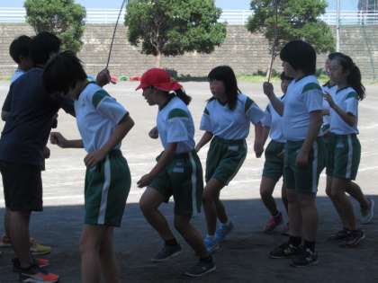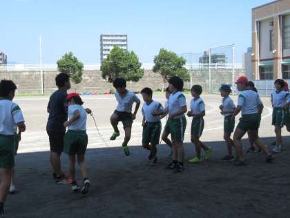 ウォーミングアップを兼ねて、長縄跳びに挑戦中です。