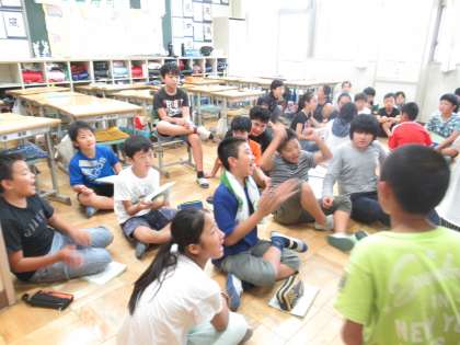 係ごとに、修学旅行の準備を進めました。レク・学習係は、バスレクの打ち合わせやリハーサルなどを行いました。