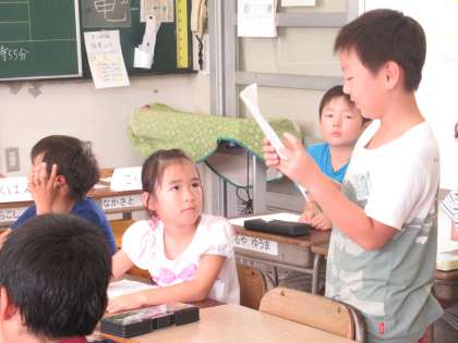 今日は、教育委員会からお客様が見えて、授業を参観しておられます。ご案内しながら、1,2年生の授業をみてきました。