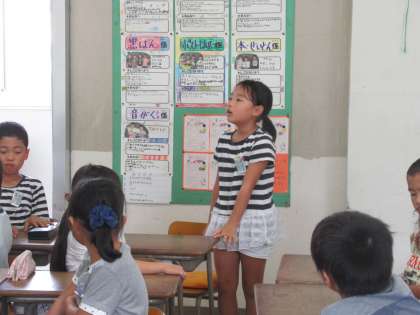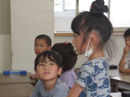 今日は、教育委員会からお客様が見えて、授業を参観しておられます。ご案内しながら、1,2年生の授業をみてきました。