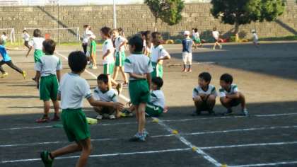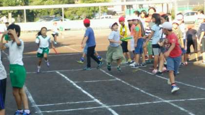 リレーの練習に汗を流しています。